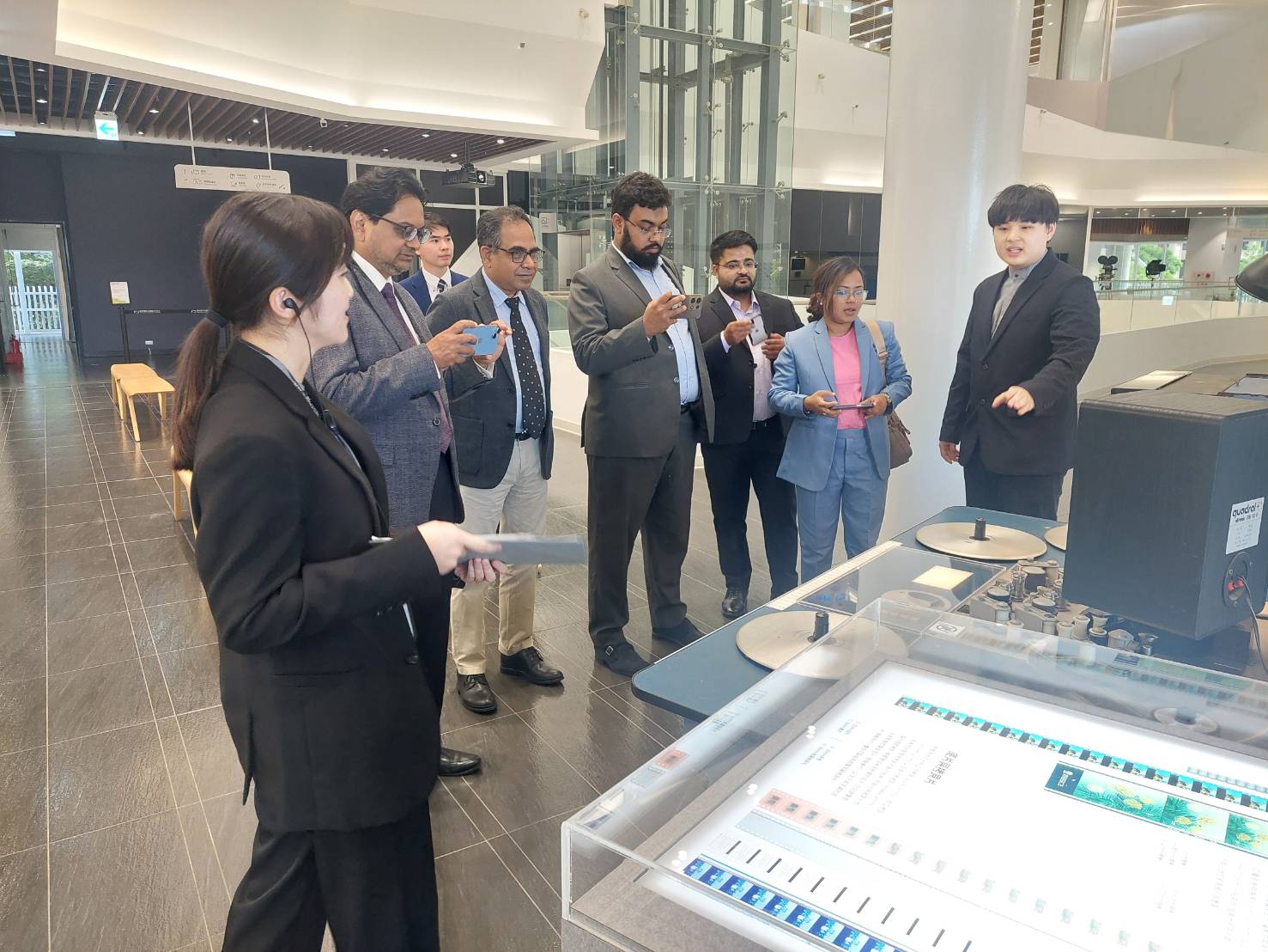 ➤The South Asian Think Tank Delegation toured the Institute’s display of vintage filmmaking equipment.