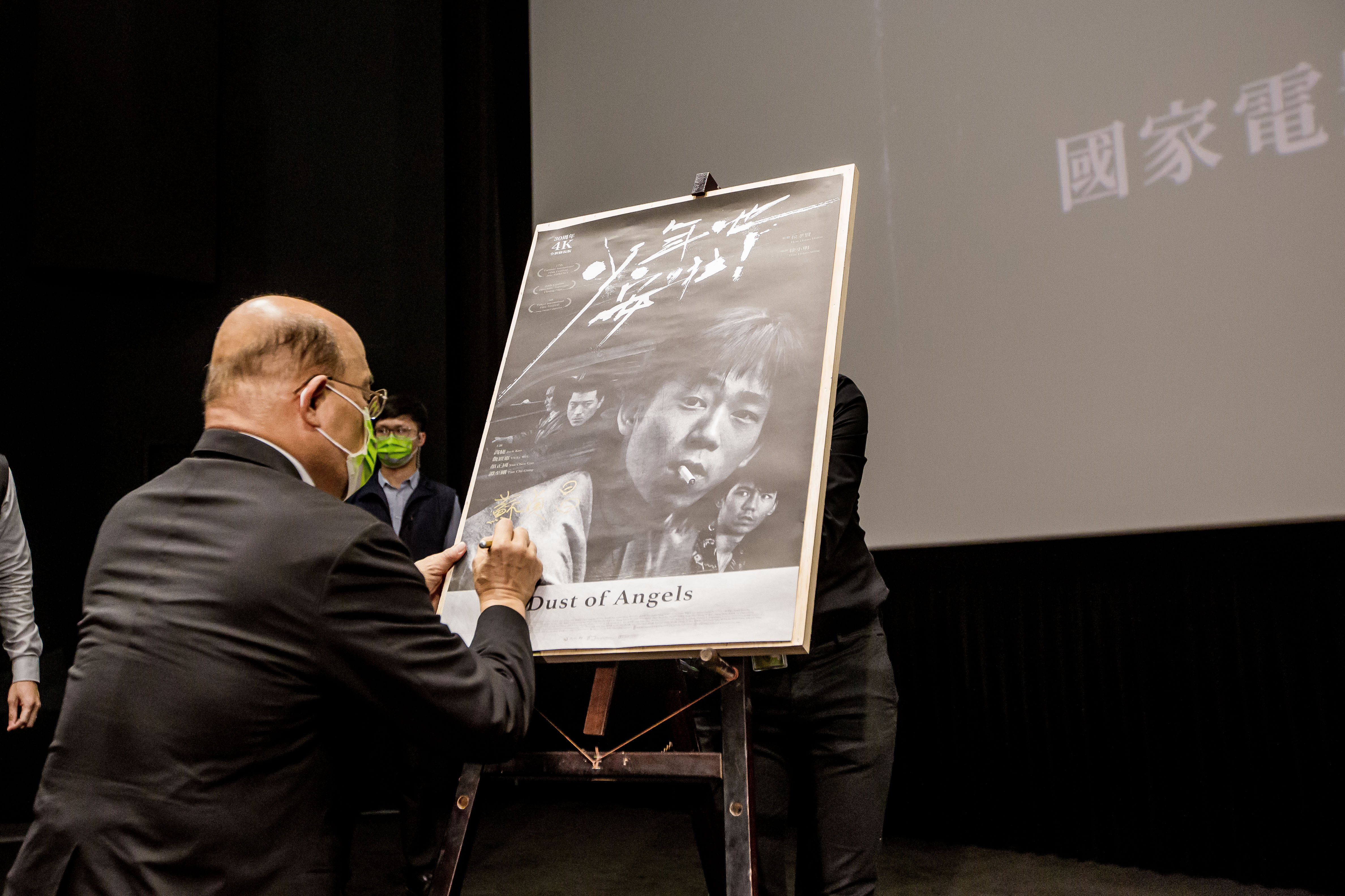 ▲行政院蘇貞昌院長特別在《少年吔,安啦!》4K修復版海報簽名留念