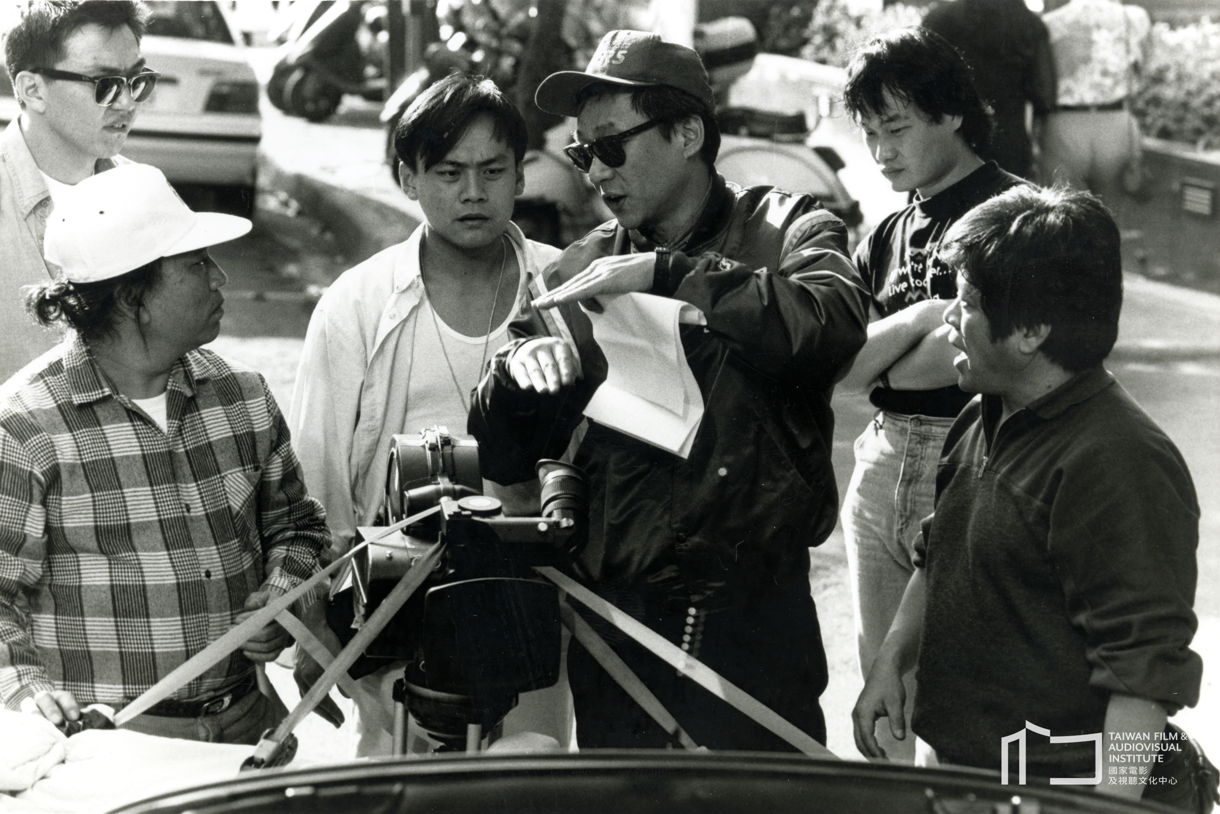 ▲《獨立時代》戴墨鏡者為導演楊德昌,旁邊白色上衣為副導演陳以文,右前方為攝影師張展