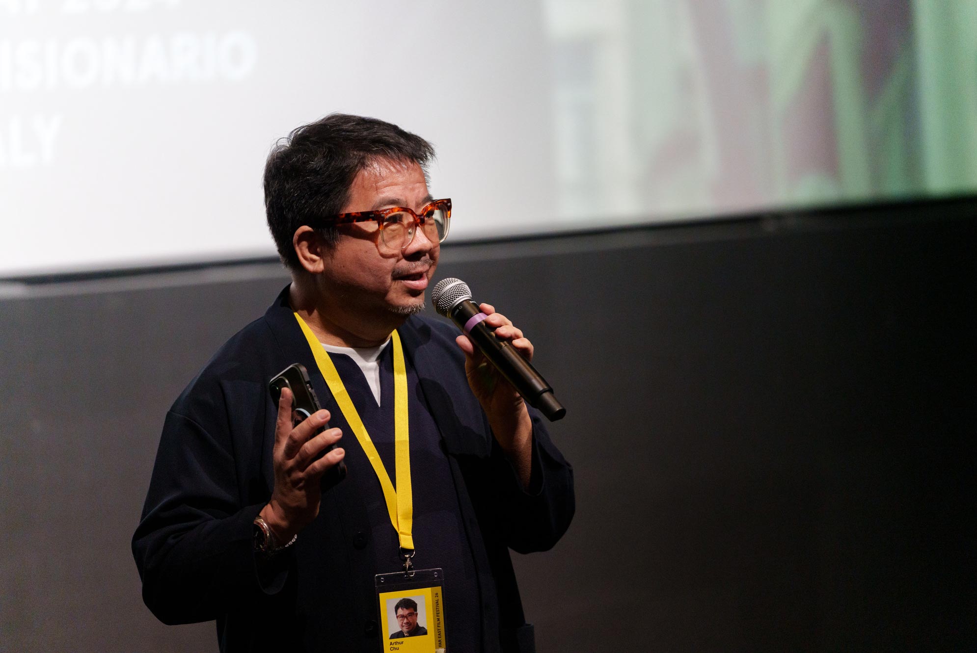 (圖/董事長褚明仁率領代表團出席本屆義大利遠東影展,並向義大利觀眾介紹李行導演在「健康寫實」時期的重要創作。photo credir: Luca Chiandoni,遠東影展提供)
