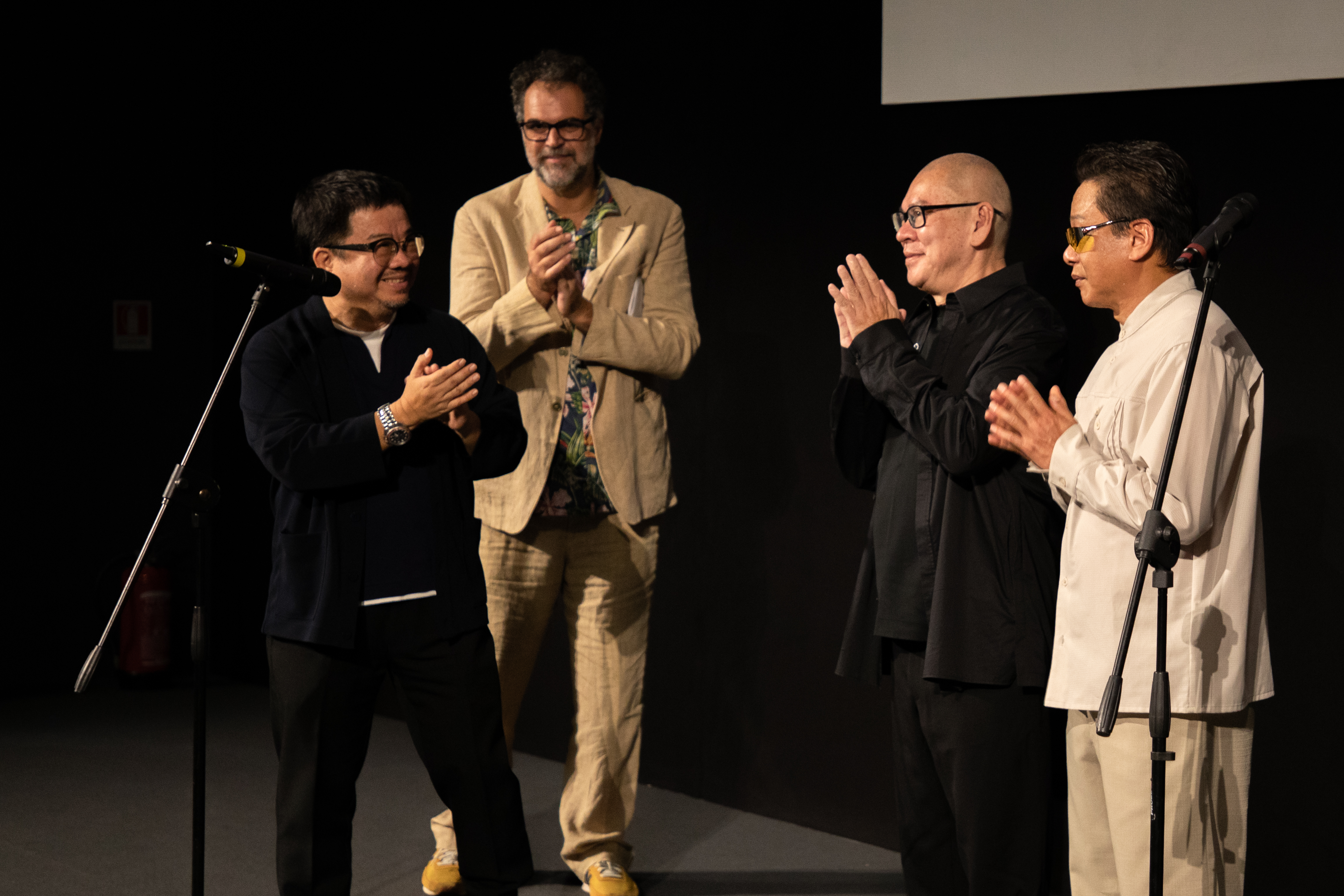 ➤影視聽中心董事長褚明仁(左一)與蔡明亮導演(右二)、演員李康生(右一)親自出席《愛情萬歲》4K數位修復版世界首映活動。
