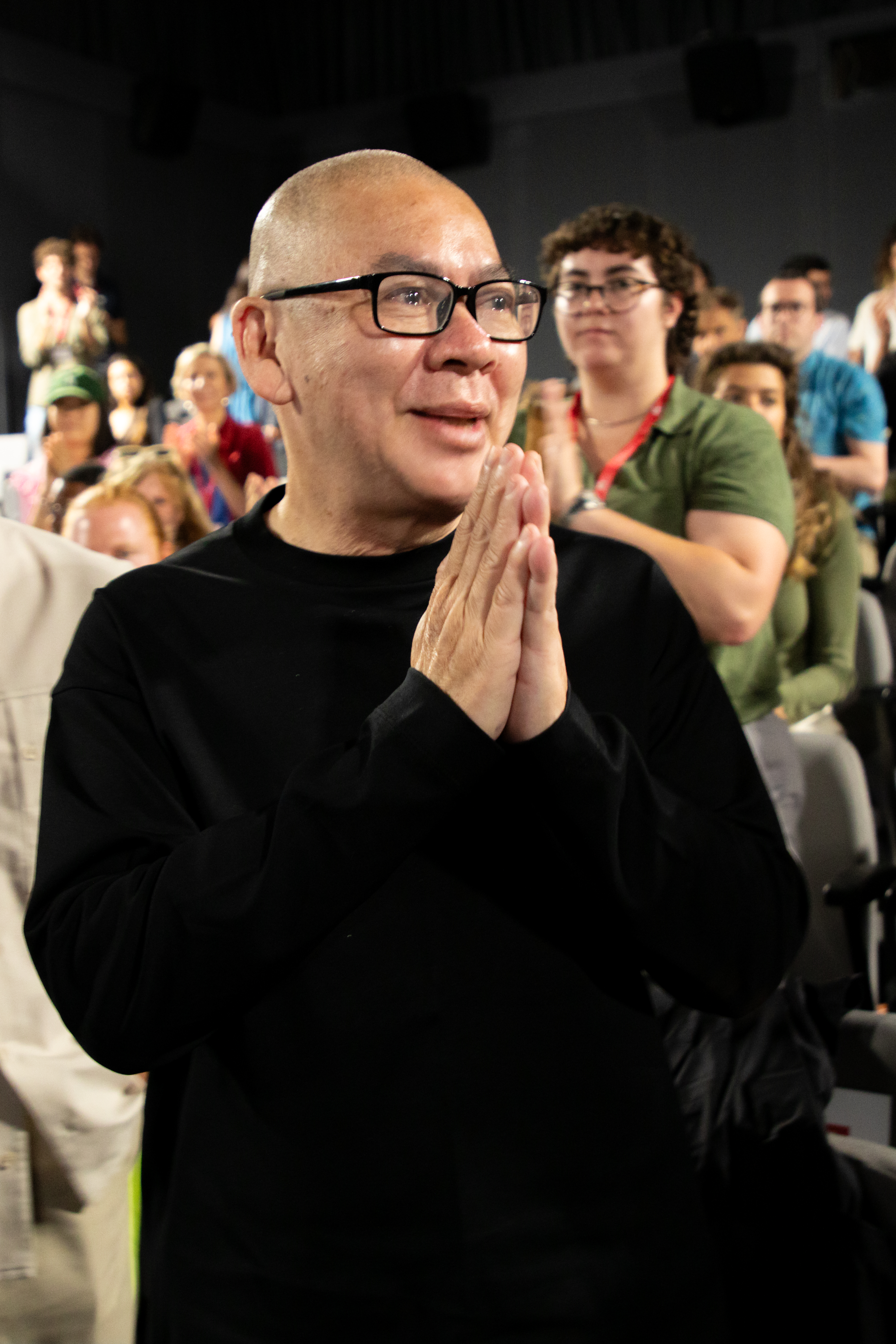 他特別和國際觀眾提及:去(2024)年影視聽中心在大安森林公園舉辦的「大安森林一邊哭( 一邊看電影 )一邊跨年」,召集三千人看《愛情萬歲》一起哭著跨年的戶外特別放映的活動。影迷們與楊貴媚在片尾的七分鐘經典哭戲共同迎來新年,是台灣獨一無二的文化現象。褚明仁董事長更邀請:「歡迎大家來年底來台北跨年,一起笑一起哭!」