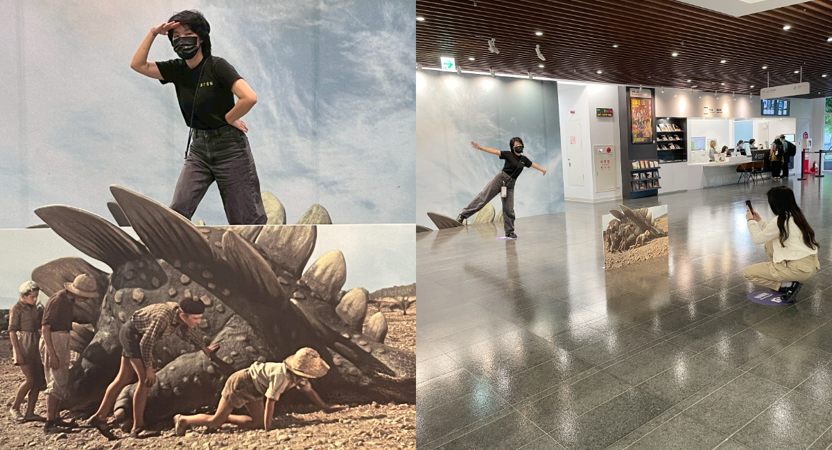 ➤國家影視聽中心場館一樓大廳復刻「捷克動畫奇航:卡雷爾茲曼經典作品選」電影裡的恐龍場景,歡迎民眾前來拍照打卡留念!(國家影視聽中心提供)