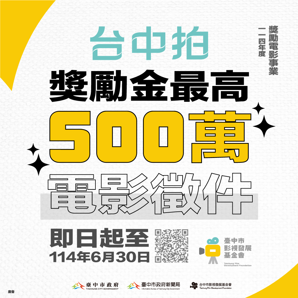 臺中市影視發展基金會為有效扶植電影產業,擴大電影製作規模,同時透過獎勵影視創作,深化臺中影視友善形象,促進城市行銷效益,辦理114年度獎勵電影事業徵件作業。